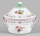 A classical style tureen polychrome painted with flower decor from a table service of Frederick William II. of Prussia for Charlottenburg Palace. Restored. Sceptre mark.