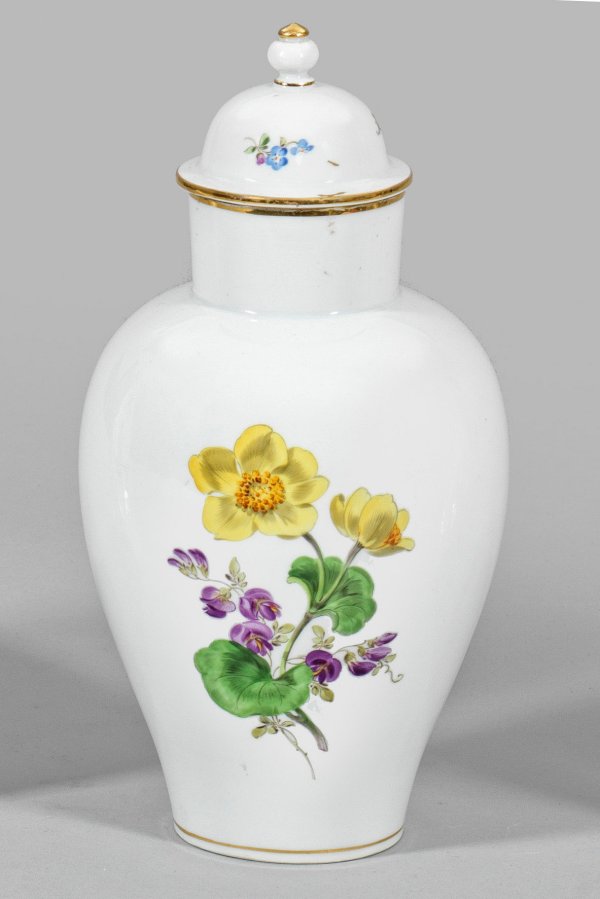 Lot 2939: Kleine Deckelvase mit Blumendekor