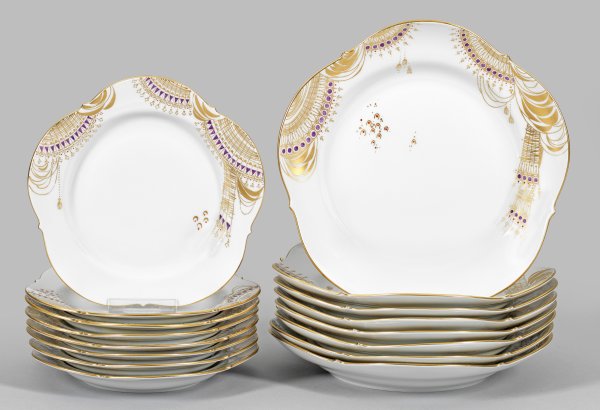 Lot 492: Sechzehn Tafel- und Menüteller mit Dekor "1001 Nacht"