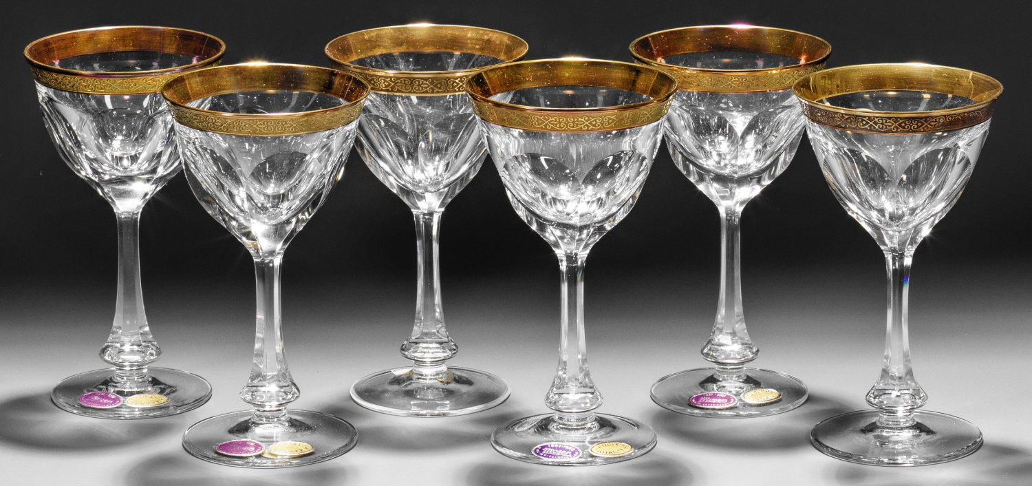 Lot 52: Satz von sechs Moser-Sherrygläsern "Lady Hamilton Gold"