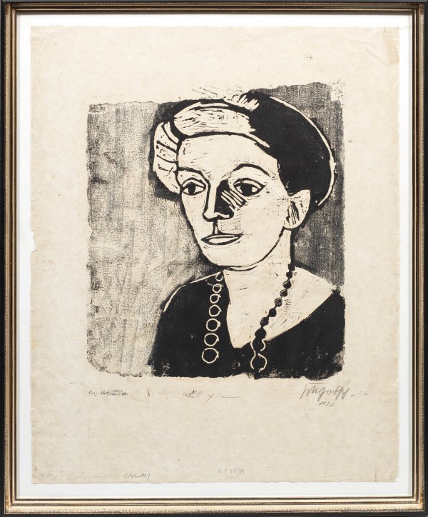 Holzschnitt/Papier, 1922. R. u. sign. Von fremder Hand bez., betitelt und zweifach dat.; Darstellung ca. 37 cm x 32 cm. Blatt 56,3 cm x 46 cm. Rahmen.