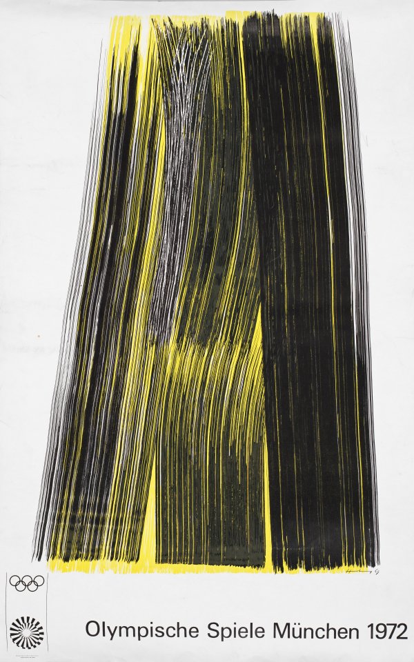 Farblithographie/Papier, 1969/1972. Im Stein sign. u. dat. (19)69; Plakat aus der Edition Olympia 72" für die Olympischen Sommerspiele München 1972. Rand-Läsuren. Blatt ca. 101 x 64 cm.