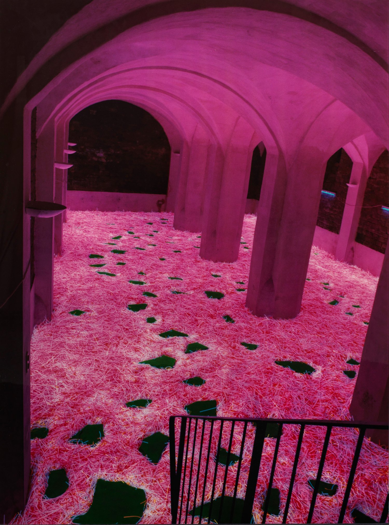 Cibachrome/Dibond, 2000. Verso sign. u. dat.; verso auf Etikett bez., betitelt u. nummeriert 1/7. Eigene Aufnahme ihrer Licht-Raum-Installation "Ferragasto" im Kunstverein Viernheim. 120 cm x 90 cm.