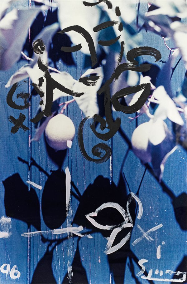 Durch neoexpressionistische Übermalung verfremdetes Motiv mit Zweigen vor einer blauen Wand. Szczesny - Maler, Bildhauer und Fotograf - gehörte in den 1980er Jahren zu den Vertretern der Neuen Wilden. 1994-2001 lebte der Künstler in New York, bevor er nach Saint Tropez zog. Farbfotografie mit Übermalungen. Unterhalb sign. u. dat. (19)96. Blatt ca. 74,5 cm x 50,5 cm. Rahmen.