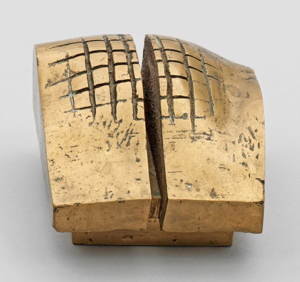 Bronze, teilw. poliert. Monogramm-Stempel "LSV" in Ligatur. Auf der Unterseite auf einem Etikett einer Ausstellung in Temeswar bez., betitelt u. dat. 1987. Ca. 11,3 cm x 17,5 cm x 17,5 cm.
