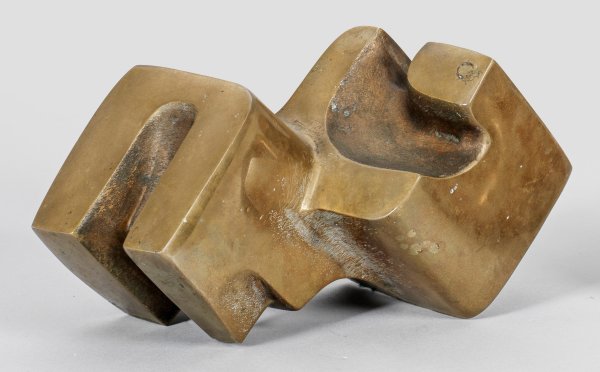 Bronze, größtenteils poliert, partiell gebürstet. Sign.-Stempel. Jecza gehört mit seinen stark abstrahierten und völlig abstrakten Arbeiten zu den bedeutendsten rumänischen Bildhauern der Gegenwart. Seit 1972 hatte er zahlreiche Einzelausstellungen, besonders in Deutschland. Ca. 13 cm x 15 cm x 26,5 cm.