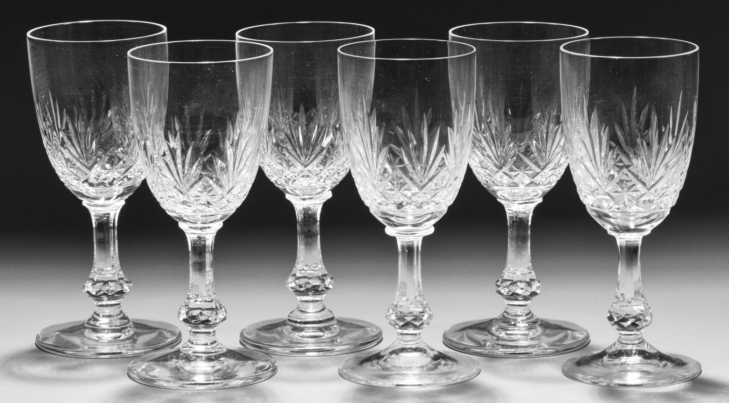 A set of six French Saint-Louis "Massenet" cut crystal sherry glasses.