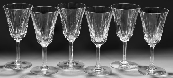 A set of six French Saint-Louis "Cerdagne" cut crystal red wine glasses. Three glasses with acid factory mark.