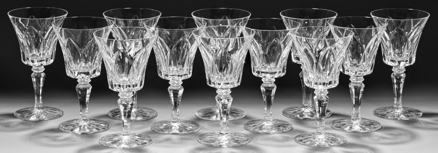 A set of twelve French Saint-Louis "Carmargue" cut crystal wine glasses.