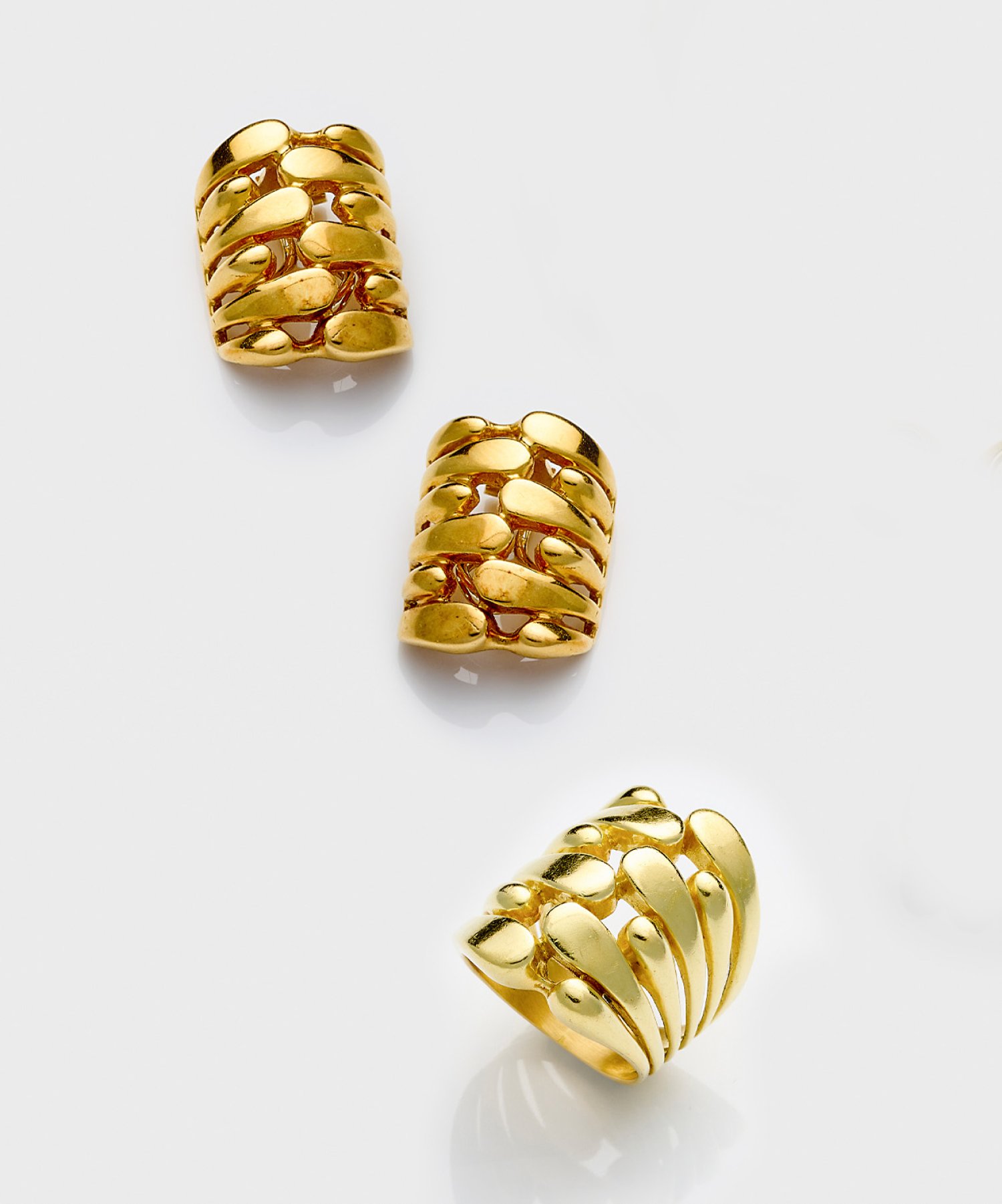 Pair of earclips and corresponding ring, in 18 k gold.