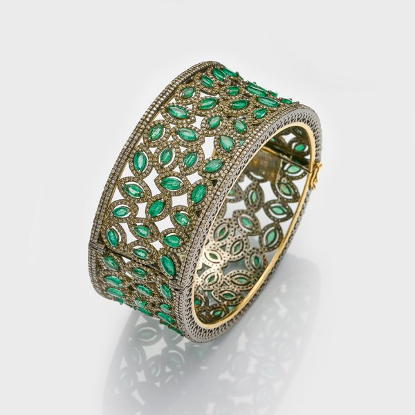 Lot 1114: Prachtvoller Smaragd-Diamant-Armreif