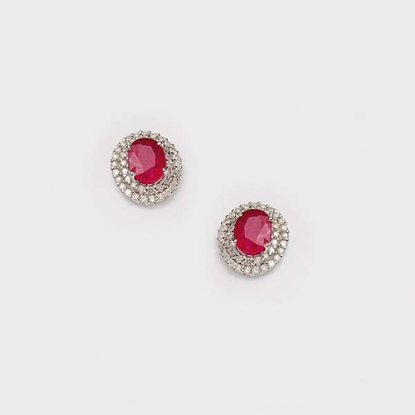 Lot 1170: Paar klassische Rubin-Brillant-Ohrringe