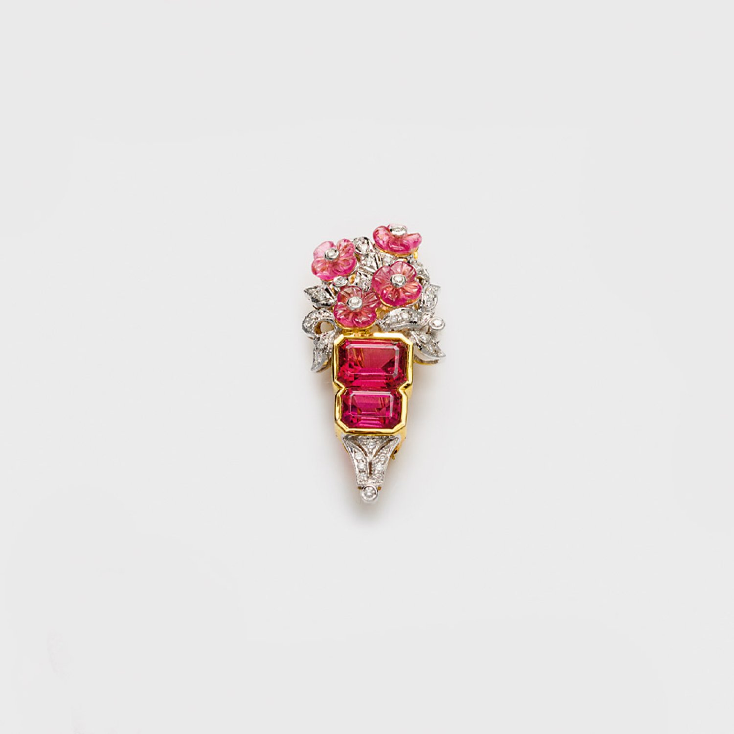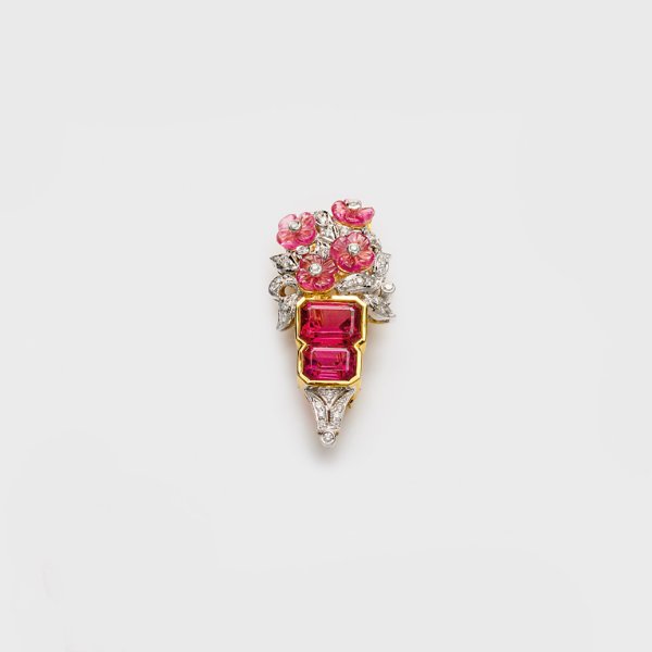Lot 1172: Florale Rhodolith-Turmalinbrosche