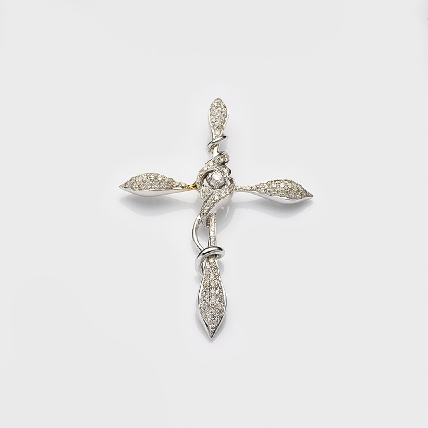 Cross pendant set with diamonds approx. 0,77 ct., in 18 k white gold.
