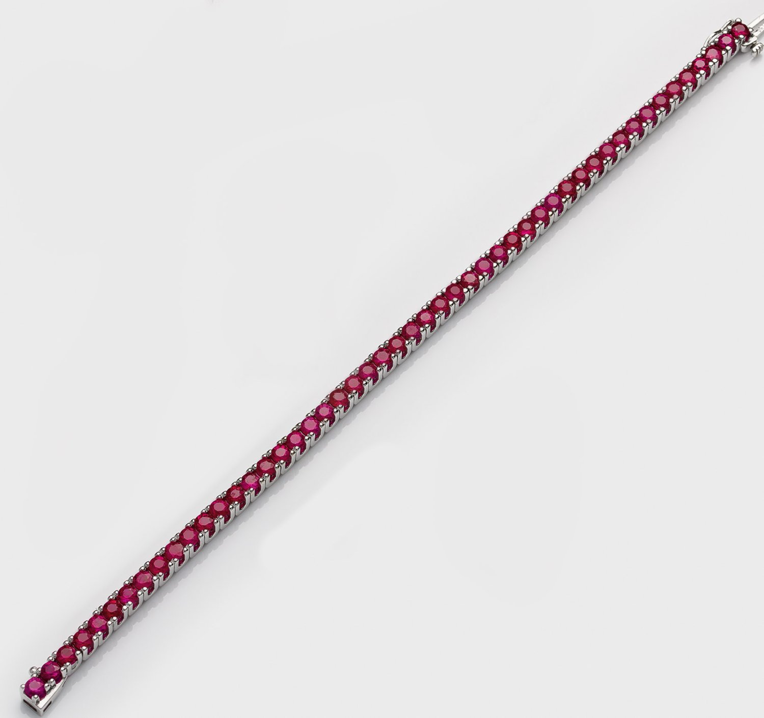 Weißgold, gest. 750. Linear besetzt mit taubenblutroten Rubinen von zus. ca. 6,23 ct.; Gew. ca. 22,27 g.