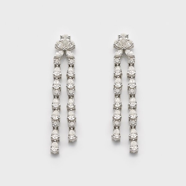 Pair of earrings set with diamonds approx. 4,87 ct. (F-G/vs1), in 18 k white gold.