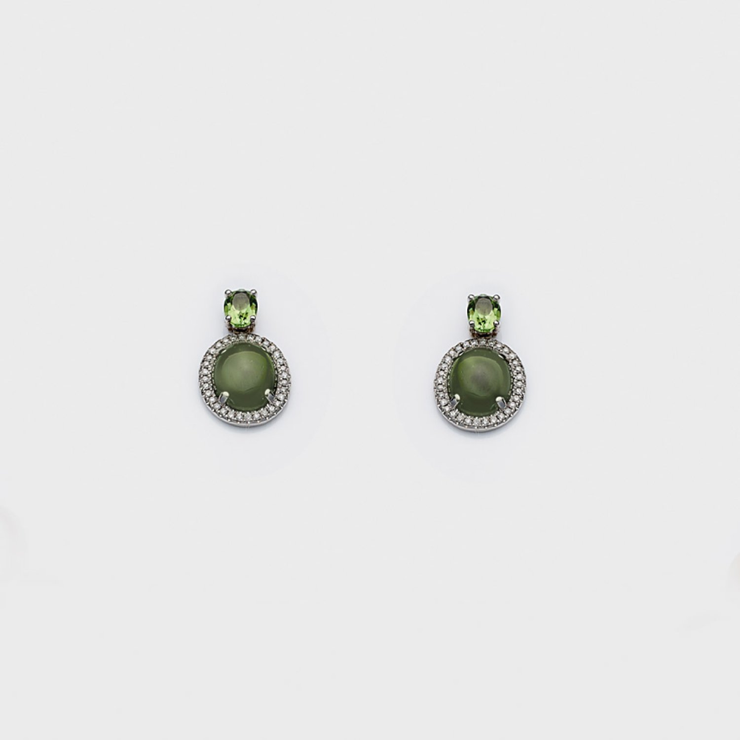 Pair of earrings set with olive-green tourmalines approx. 5,10 ct. and diamonds approx. 0,20 ct., in 18 k white gold.