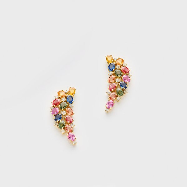 Pair of earrings set with multicolored natural sapphires approx. 4,70 ct. and diamonds approx. 0,40 ct. (H/vs1), in 18 k gold.
