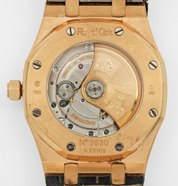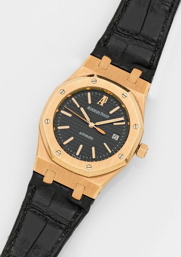 Gentlemen's wristwatch "Royal Oak Jumbo" by Audemars Piguet, automatic movement with selfwinding, in 18 k red gold. Manufacturer'mark.