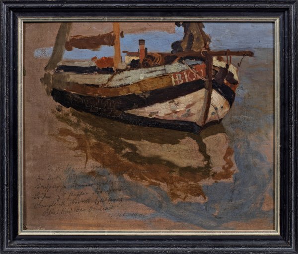 Öl/Malkarton. L. u. ausführlich bez. u. dat. "In der Sonne gemalt (...) 12 Oct. 1908". 30 cm x 36 cm. Rahmen