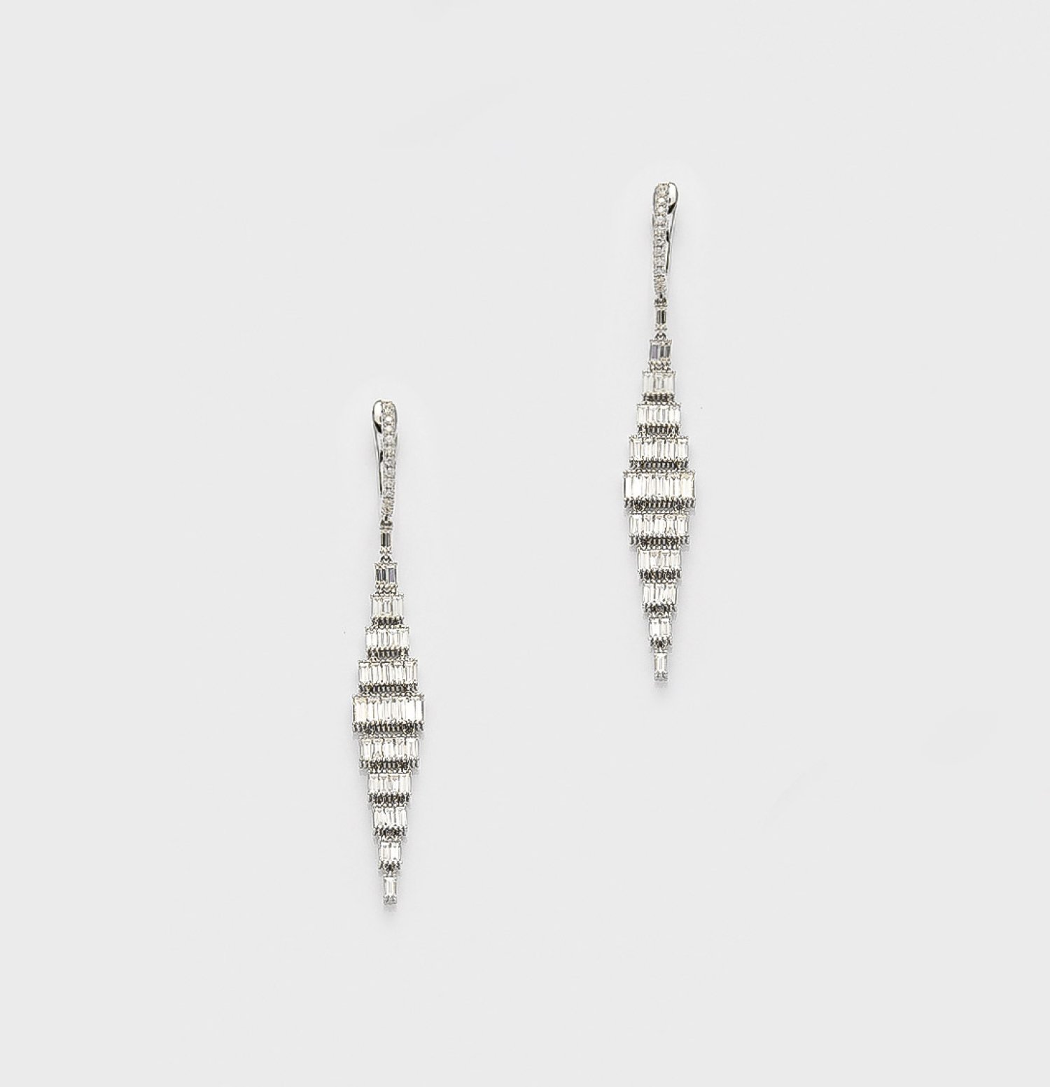 Lot 978: Paar hochfeine Diamant-Ohrgehänge im Stil der 20er Jahre