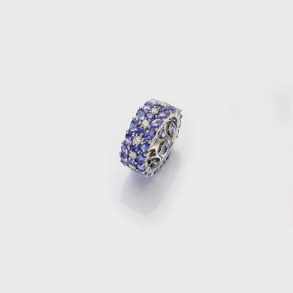 Lot 979: Dekorativer Tansanit-Brillant-Bandring