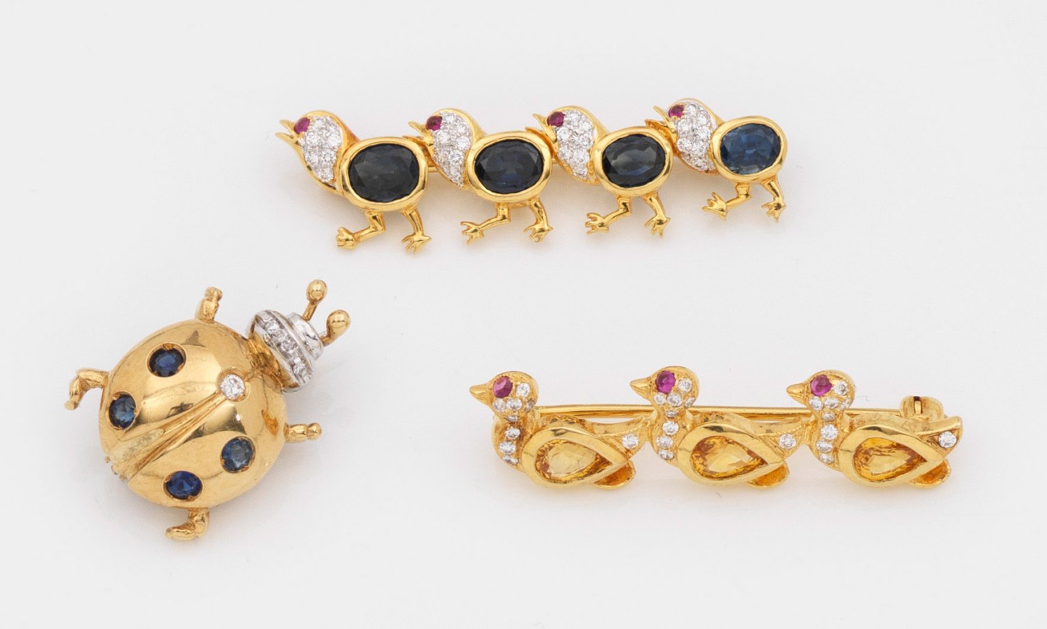 Lot 2174: Drei dekorative Saphir-Tierbroschen