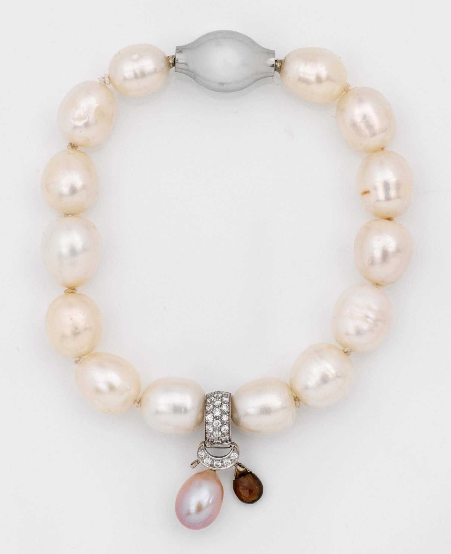 Lot 2231: Süßwasser-Perlarmband mit Diamanten