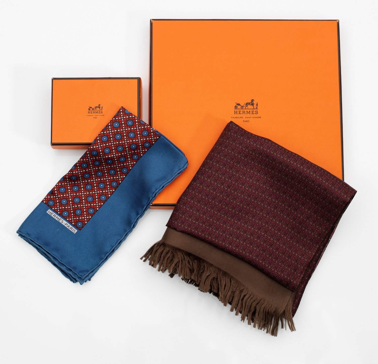Two silk scarfs by HERMÈS. Manufacturer's mark Original box.