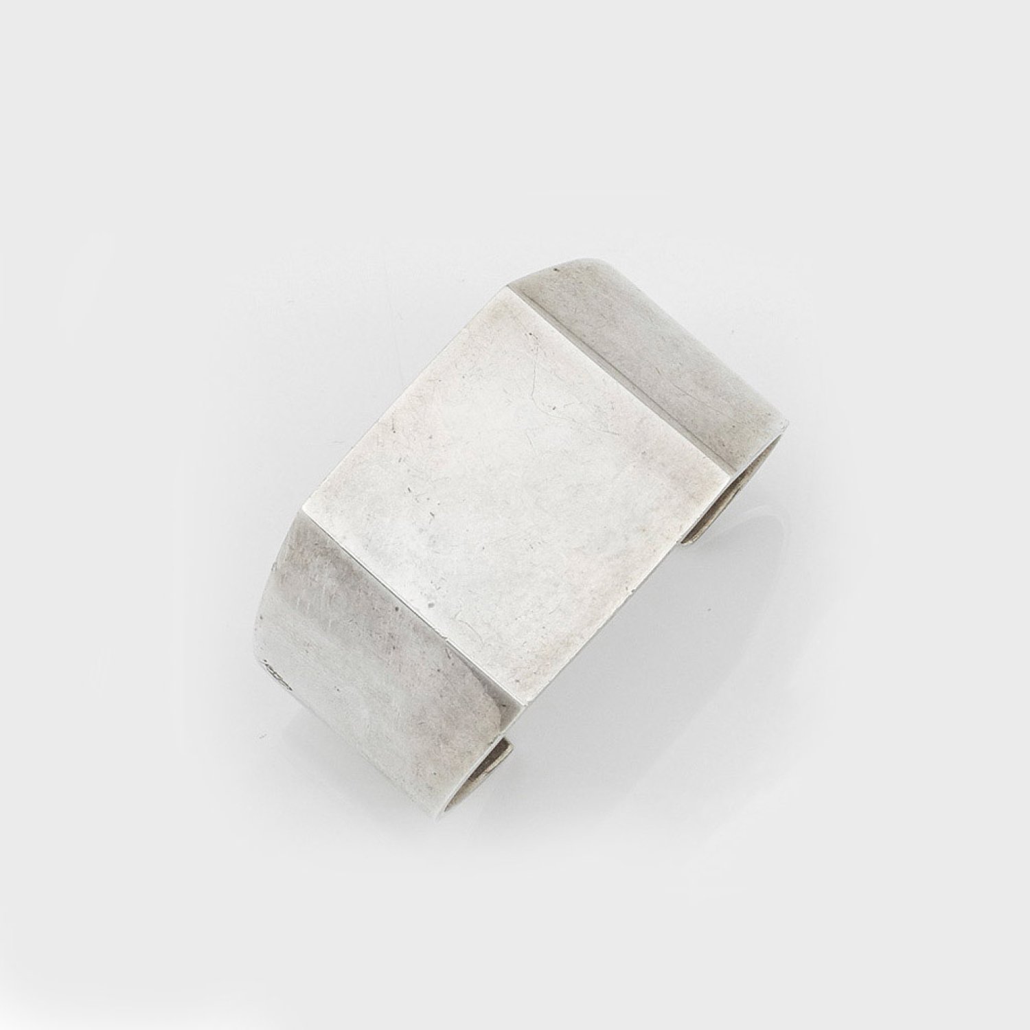 Silber, gest. 925. Breiter, leicht verlaufender Armreif. Sehr schöne Silberschmiedeausführung. Herstellerzeichen. Gew. ca. 90,73 g.