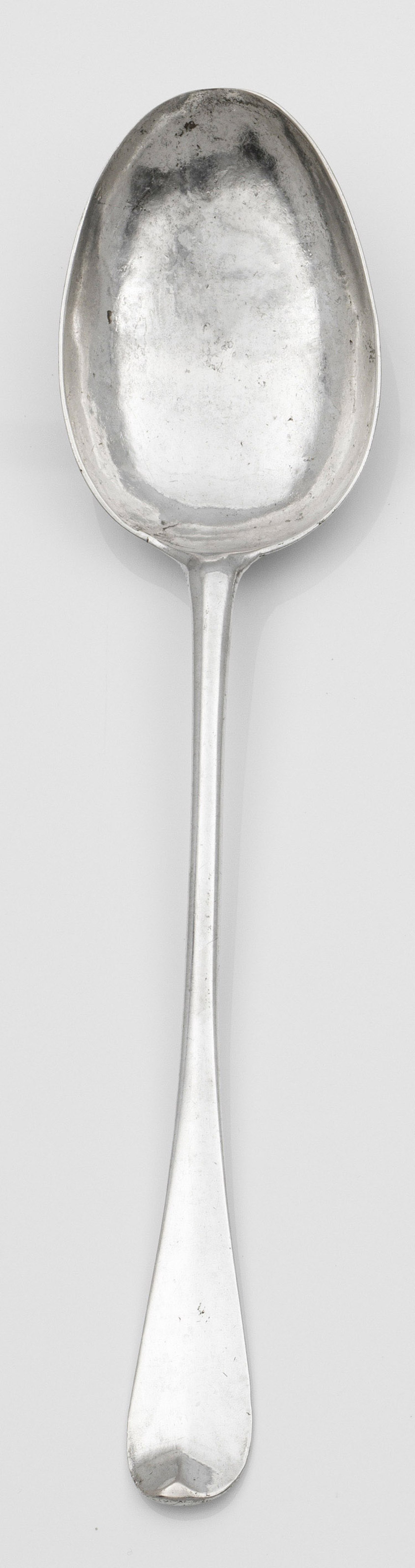 A large royal German Baroque serving spoon from the Dresden court silver and the property of the kings of Saxony. Monogrammed.
