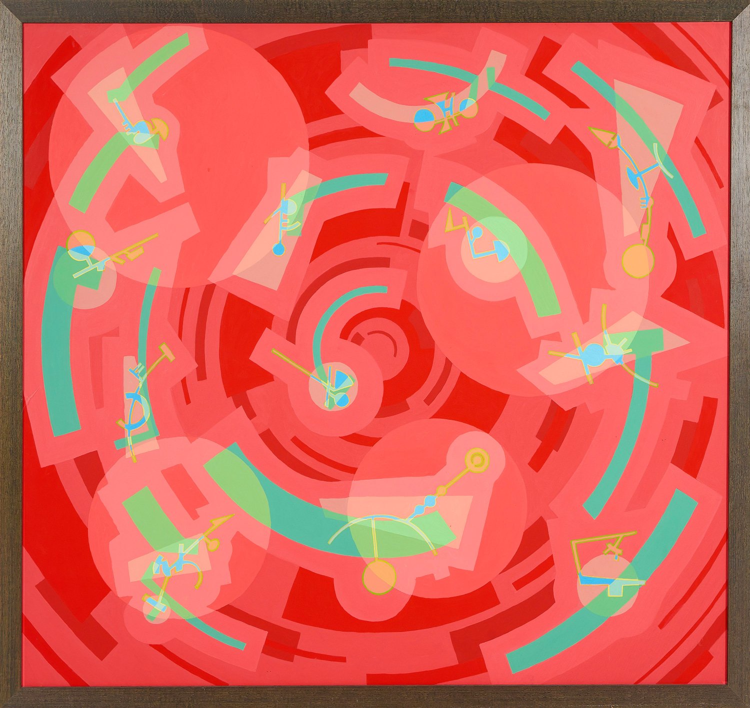 Abstrakte Arbeit Enenkels, der 1981-1990 an der Kunstakademie Münster studierte, 1989/90 als Meisterschüler von Professor Hermann-Josef Kuhna. Öl/Lwd.; Verso sign. u. dat. 1991. 146 cm x 156 cm Rahmen.