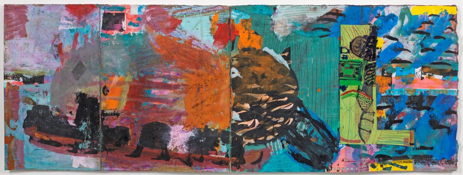 Mixed media and collage on paper. Signed and dated (19)95.