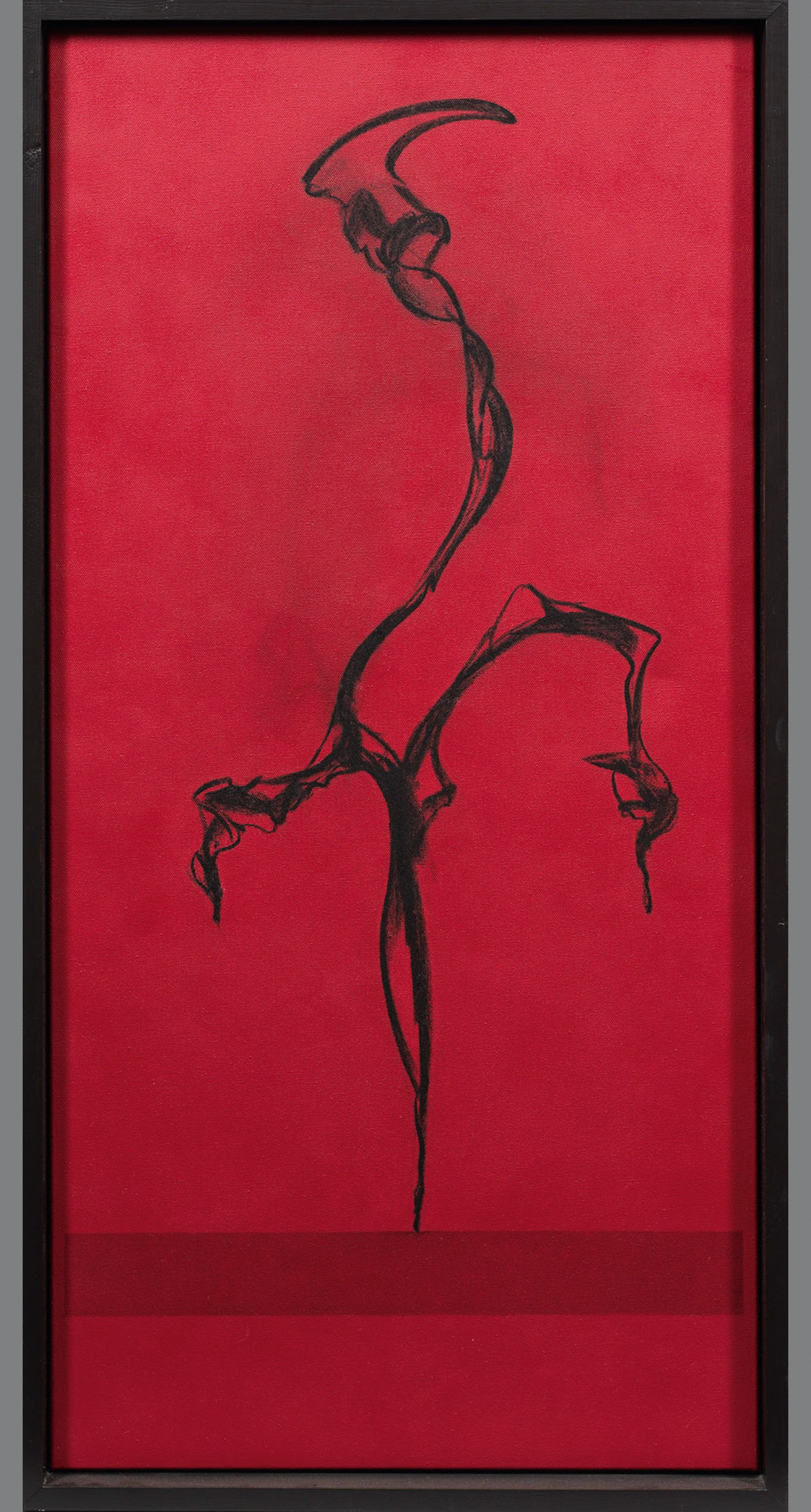 Abstrakte, gestische, an schwelenden Rauch erinnernde Figur auf tiefrotem Grund. Sziráki studierte in Maastricht zunächst Design und wechselte dann in die Bildhauerklasse. Seit Mitte der 2000er Jahre betreibt er sein Atelier in Bedburg, in dem Skulpturen, überwiegend für den öffentlichen Raum und großformatige Gemälde, aber auch Konzepte für Lichtobjekte und andere Installationen entstehen. Mischtechnik mit Öl und Kohle/Lwd.; Verso sign., dat. (19)96 und betitelt. 120 cm x 59,5 cm. Rahmen.