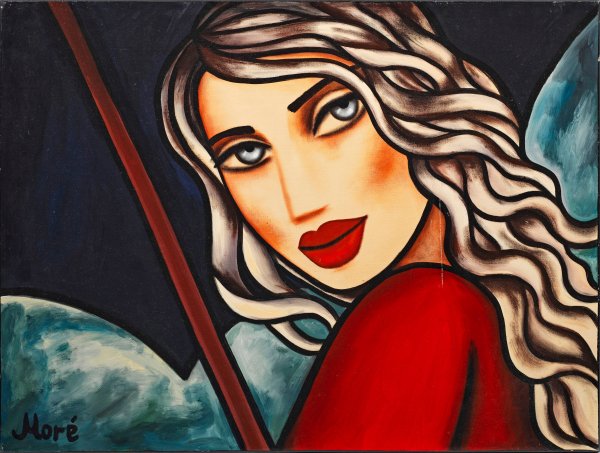 Frühes Werk der seit 1995 in Deutschland lebenden, bekannten Malerin, die von der Pop Art beinflusste, weibliche Bildnisse malt. Acryl/Lwd.; L. u. sign.; Verso sign.; betitelt u. dat. 2003. 70,5 cm x 95 cm.