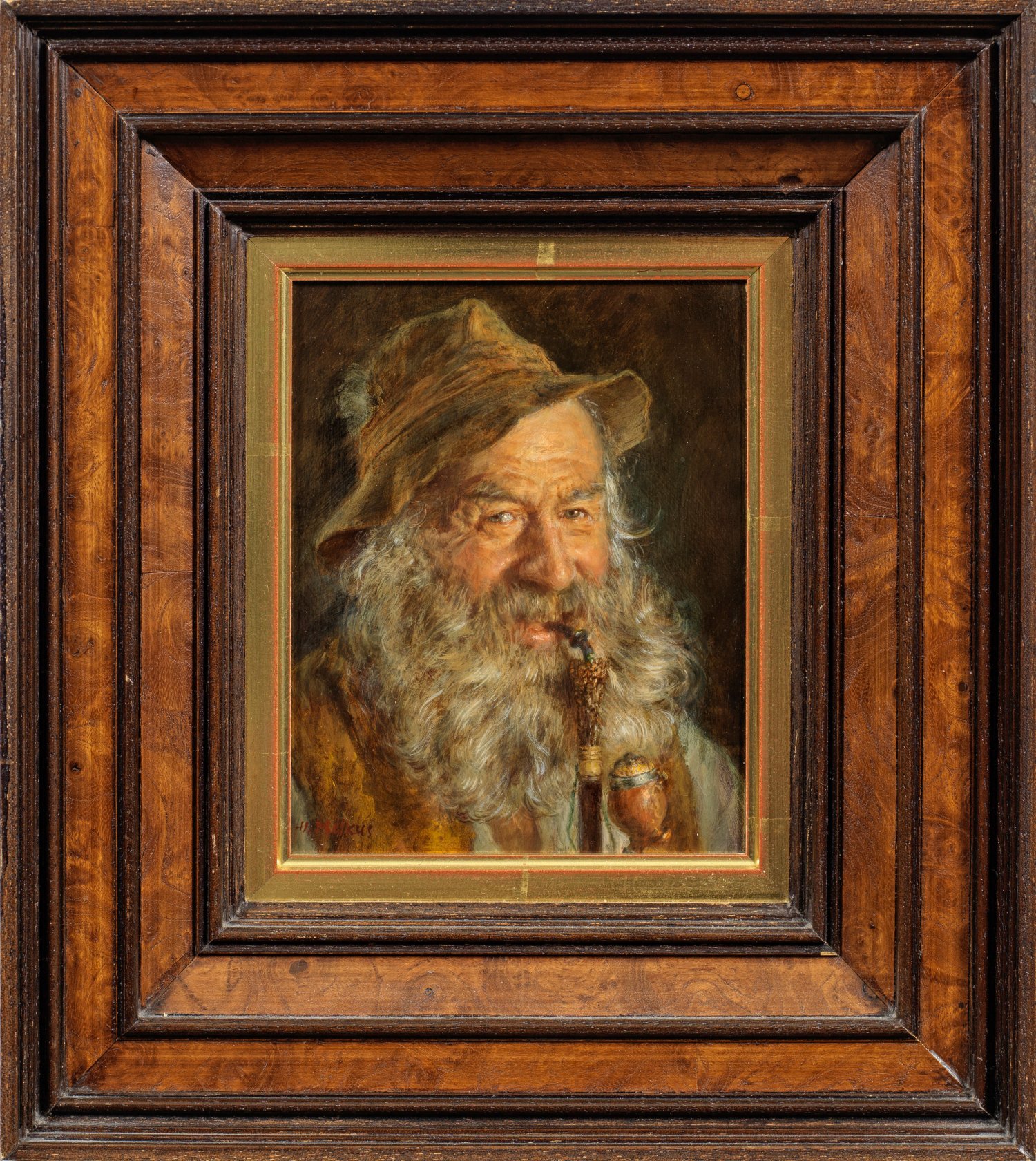 Bildnis eines älteren Oberbayern beim Pfeifengenuss
