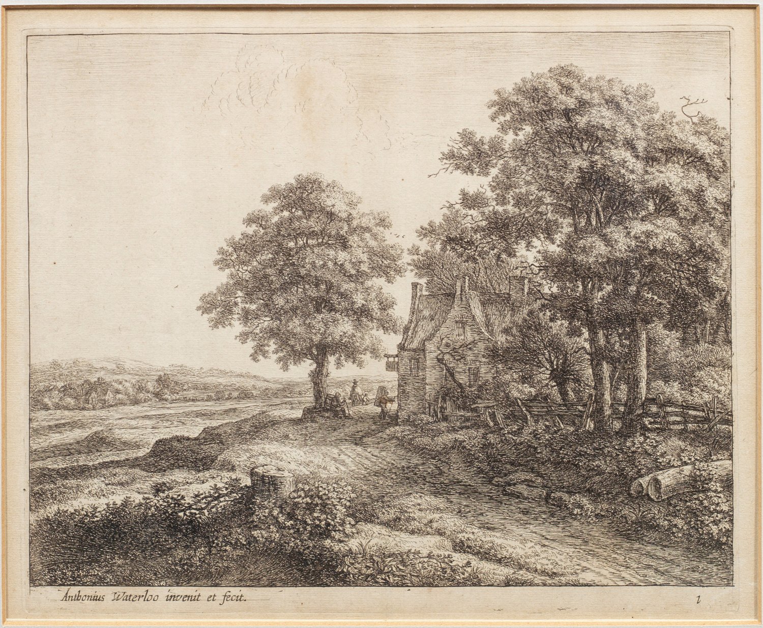 Radierung/Papier. In der Platte bez. "Anthonius Waterloo invenit et fecit / 1". Blatt 1 aus einer Serie von 6 Landschaften, Wvz. Hollstein Dutch L.251.113-118. Plattenmaß 23,5 cm x 29 cm. Rahmen.