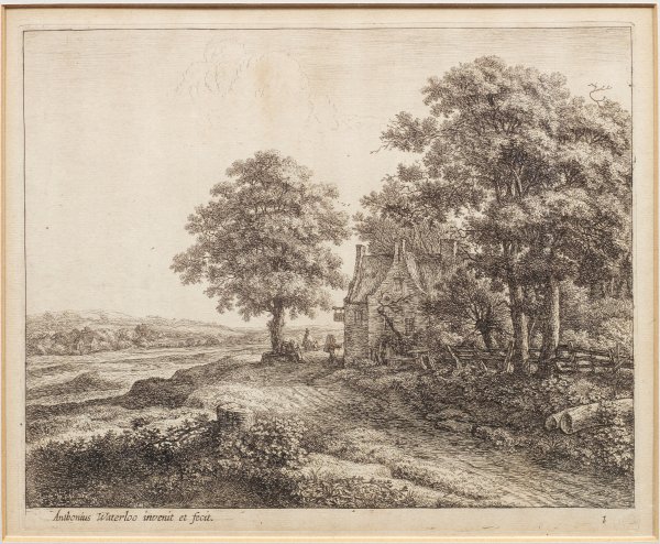Etching on paper. Inscribed in the plate. Plate 1 from a series of 6 landscapes (Hollstein Dutch L.251.113-118).