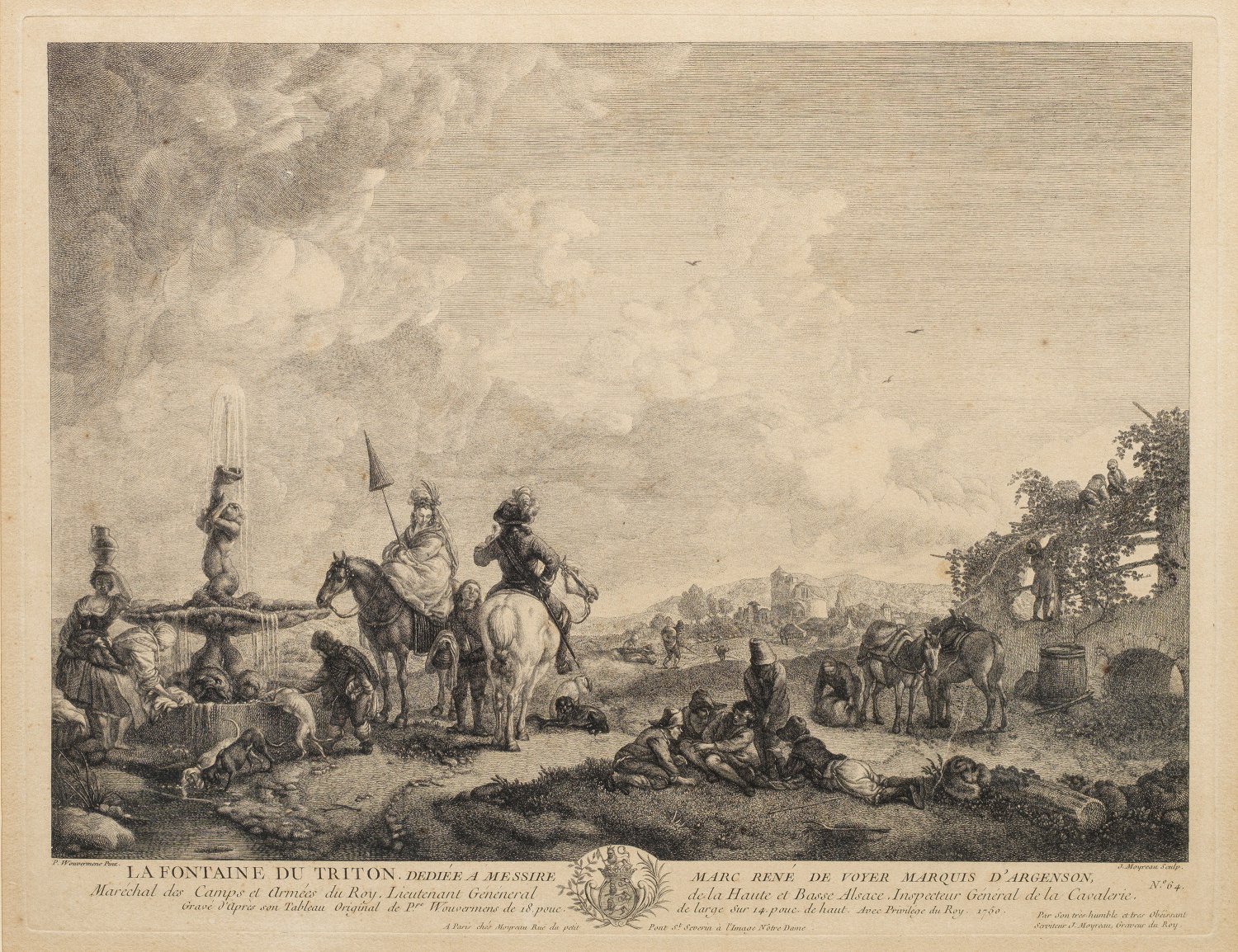 Copper engraving after Philips Wouwerman (1619 - 1668), engraved and published by Jean Moyreaus (1690-1762), Paris 1750.