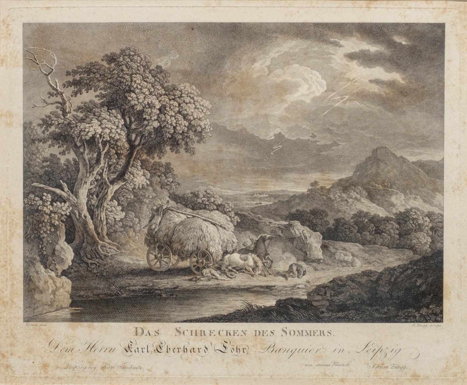 Kupferstich/Papier, um 1790/1800. Gestochen von Adrian Zingg (1734 - 1816), erschienen bei Karl Tauchnitz in Leipzig. Plattenmaß 27,5 cm x 34 cm. Rahmen.