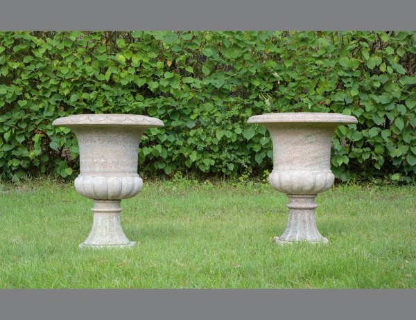 A pair of French granit park vases.