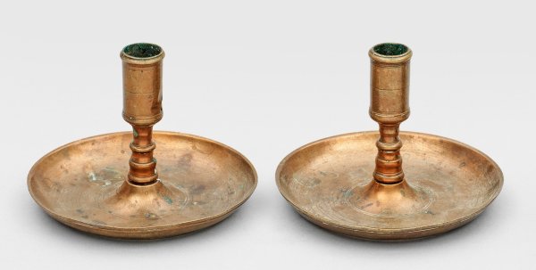 A pair of German Baroque brass travel candlesticks that can be screwed together.