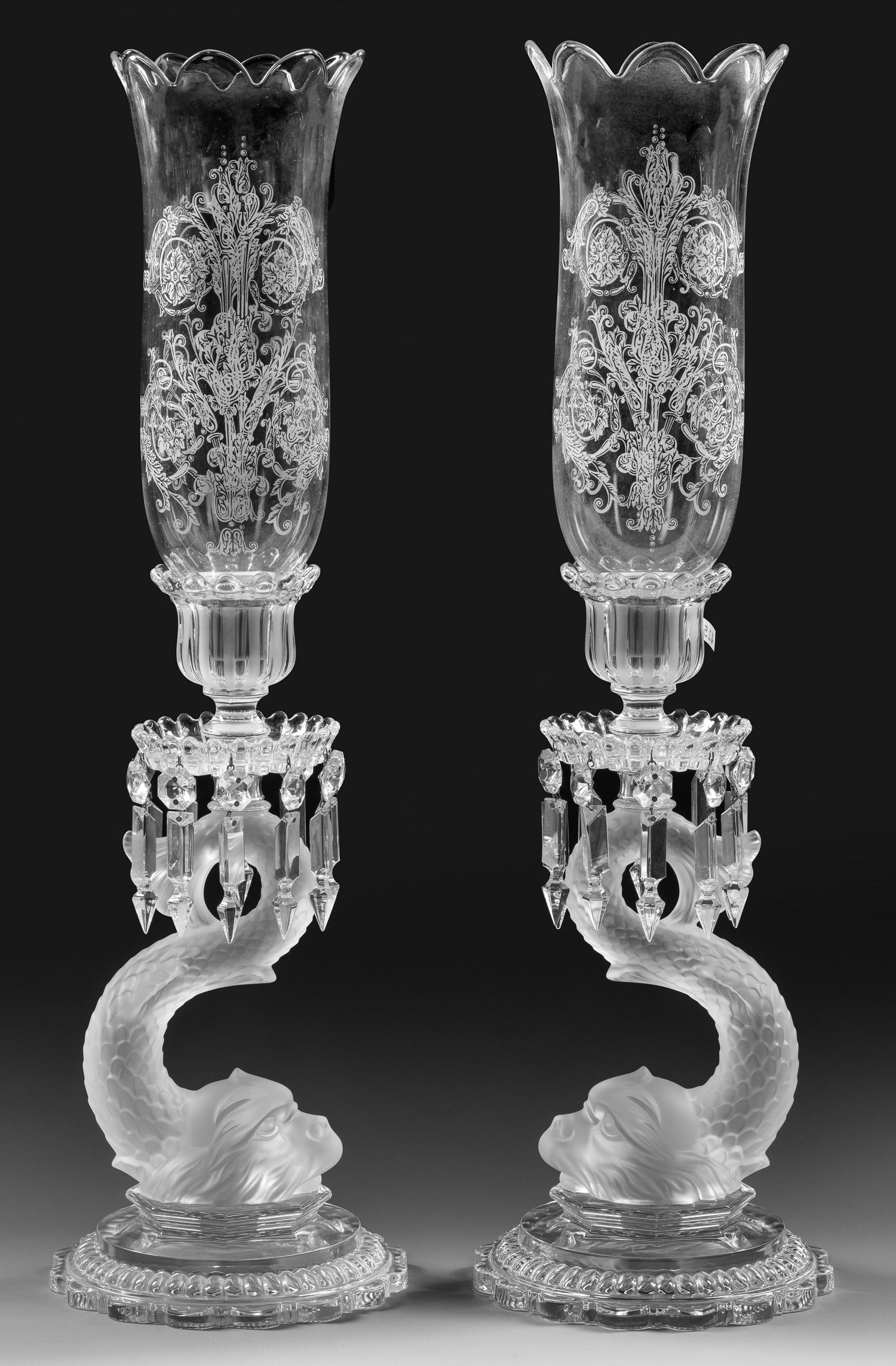 Lot 415: Paar dekorative, große Baccarat-Kerzenleuchter mit Delfinen