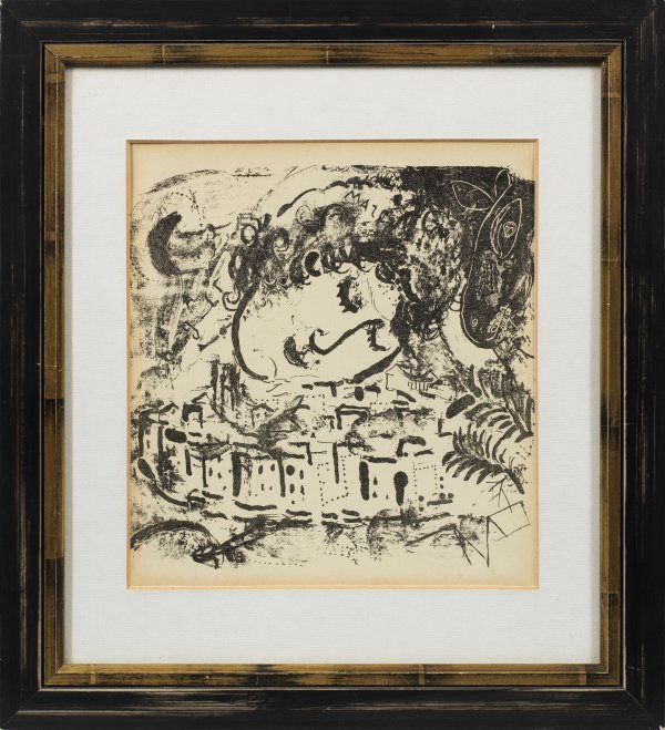 Lithographie/leichtes Velin, 1957. Erschienen in Jacques Lassaigne, Chagall, Maeght, Paris 1957. Druck bei Mourlot, Paris. Eines von 6000 unsignierten Expl.; Wvz. Mourlot 199. Passepartoutausschnitt 21 cm x 19,5 cm. Rahmen.