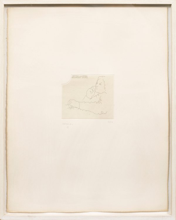 Radierung/Velin, 1980. Sign. und num. 31/50. In der Platte spiegelverkehrt bez.; Rückseitiges Etikett der Galerie Meyer-Ellinger, Frankfurt a. M.; Hrsg. von Galeria Maeght, Barcelona. Plattenmaß 11,5 cm x 14 cm. Blatt 52,5 cm x 43 cm. Rahmen.