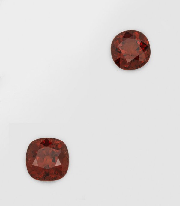 Lot 1023: Paar Spessartin-Steine mit Entwurfszeichnung für Ohrringe