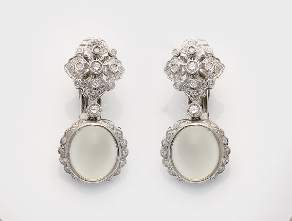 Lot 1029: Paar elegante Mondstein-Diamant-Ohrringe