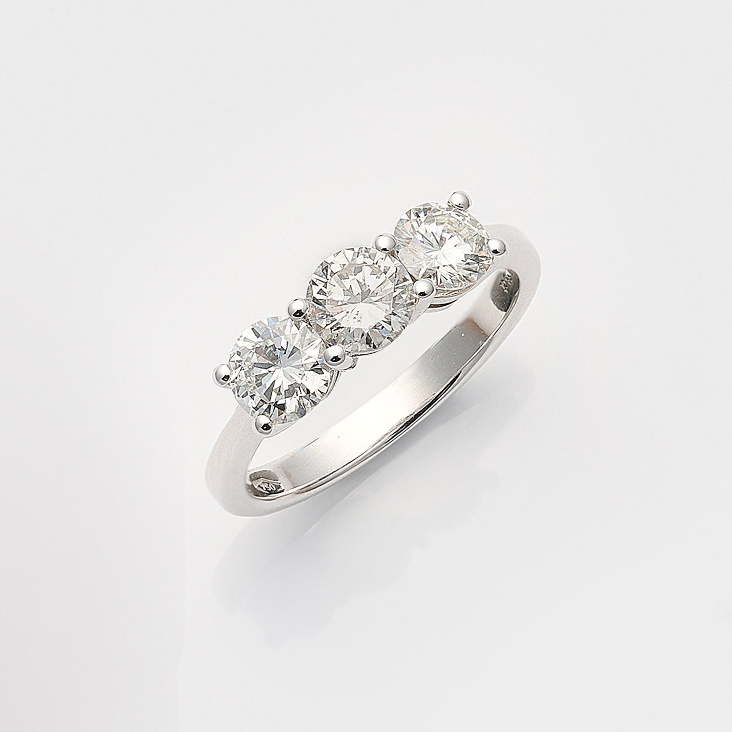 Ring set with 3 brilliants approx. 1,60 ct. (H/vs-si), in 18 k white gold.