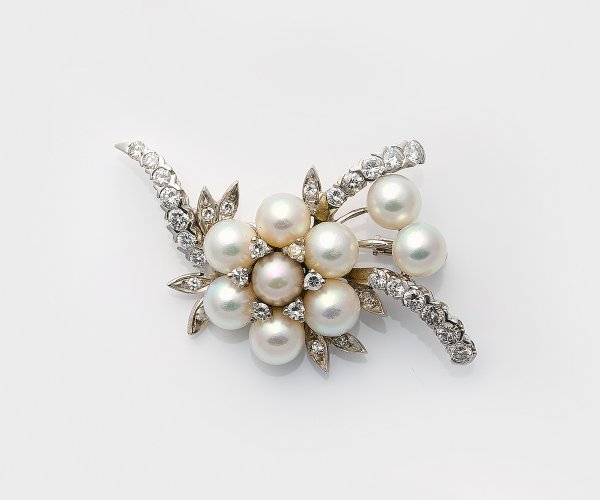 Lot 1033: Elegante Brillant-Perlbrosche