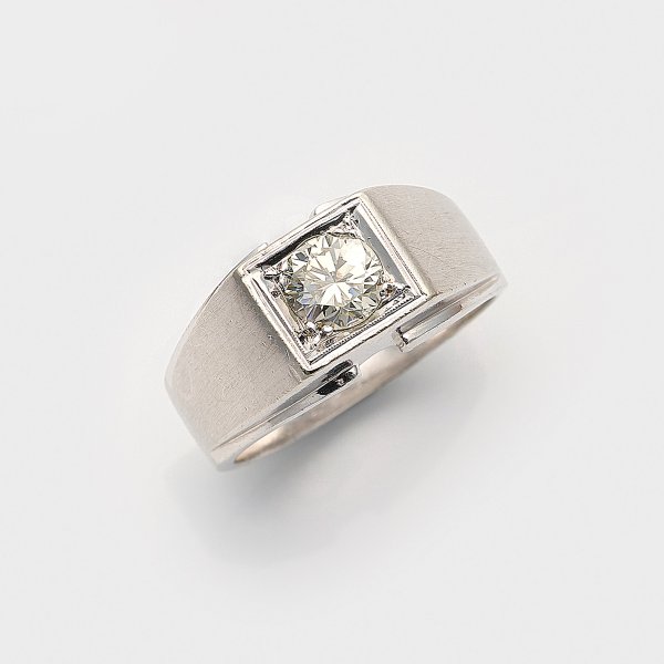 Gentleman's ring set with a diamond solitaire approx. 1,00 ct. (M/vvs), in 14 k white gold.